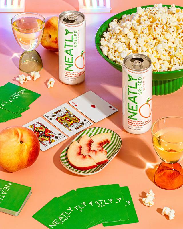 Neatly Spiked Vodka Green Tea Seltzer tastes like the weekend minus the burning, bloating and crashing. Lightly carbonated with flavors including black cherry, blueberry honey, pina colada, and white peach. Female founded and female led.