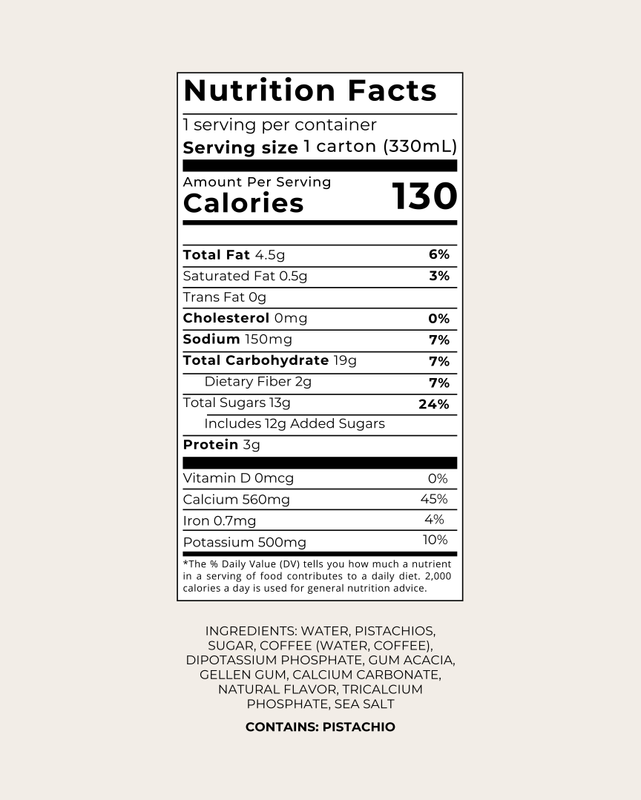 Delicious Pistachio Milk & Rich Cold Brew Coffee. Our Pistachio Milk Latte is the go-anywhere, do-anything personal barista who gets your order (and name) right every time. Lightly sweet and always made without any added oils or fillers.