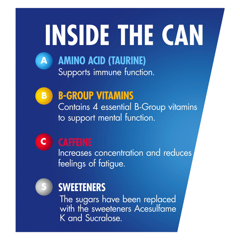 Red Bull Sugar Free Red Edition Energy Drink gives you Wiiings whenever you need them. Red Bull Sugar Free is a lightly carbonated energy drink made with caffeine, taurine, B vitamins and water, that brings you the same taste and good times of Red Bull. Sweetened with acesulfame-potassium K and sucralose, Red Bull Sugar Free has 10 calories per 8.4 fl oz can for a low calorie energy drink. While aiming for great heights during your workday, in your workouts or when gaming, why not crack open a refreshing can of Red Bull? Drink sugar free Red Bull straight from the can or pour into a glass over ice. This can of Red Bull will keep you stocked for any occasion, whether it’s hanging with friends, watching the game or going on a road trip. Be ready for the big moments with a can of Red Bull. Store this can of Red Bull at room temperature or toss it in the fridge. Red Bull gives you Wiiings.