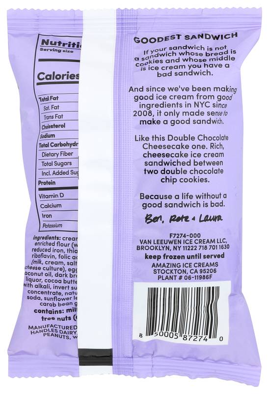 Van Leeuwen Double Chocolate Cheesecake Sandwich 5.8oz