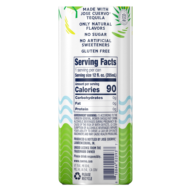 Hard Seltzer from the #1 Tequila and Ready-to-Drink brand Jose Cuervo! Jose Cuervo® Playamar® Tequila Hard Seltzer Lime is simply made with Cuervo® Tequila and natural lime flavors. Its flavor starts as tart lime peel fading quickly into sweet citrus and agave. It has 0 carbs, only 90 calories per 12 oz can, is also sugar-free and gluten free with no artificial flavors. Inside each Playamar® can is clear, sparkling liquid with a hint of fruit. (4.5% ABV - 9 Proof).