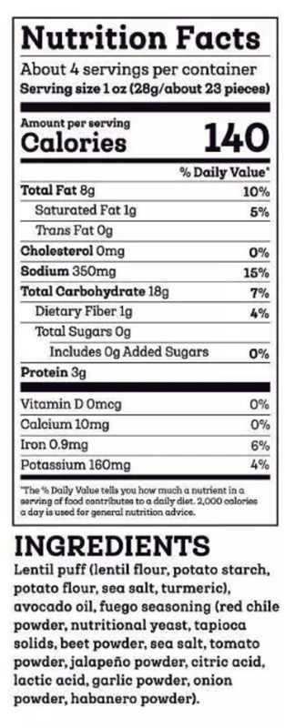 Made with lentil flour & avocado oil and seasoned with jalapeño powder, nutritional yeast & garlic powder