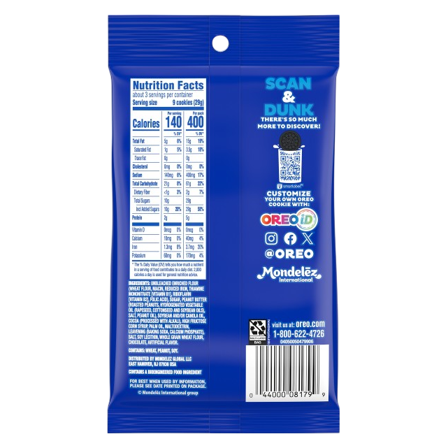Take a delicious break with OREO Mini Peanut Butter Chocolate Sandwich Cookies. A nutty twist on classic OREO chocolate cookies, these mini cookies sandwich scrumptious peanut butter-flavored creme filling between two OREO chocolate wafers, but in bite size cookies that are easy to enjoy. OREO Minis are packed in a bag that is the ideal size for snacking at home or on the go, making them great for sharing with family and friends or topping your favorite ice cream, cake, or cupcake recipe for an exciting dessert. Chocolate peanut butter cookies are delicious with or without milk, and they make great party favors, stocking stuffers, Easter basket fillers, and Halloween treats. These individually packed snack cookies are great for lunchboxes, travel snacks, and on the go snacks.
