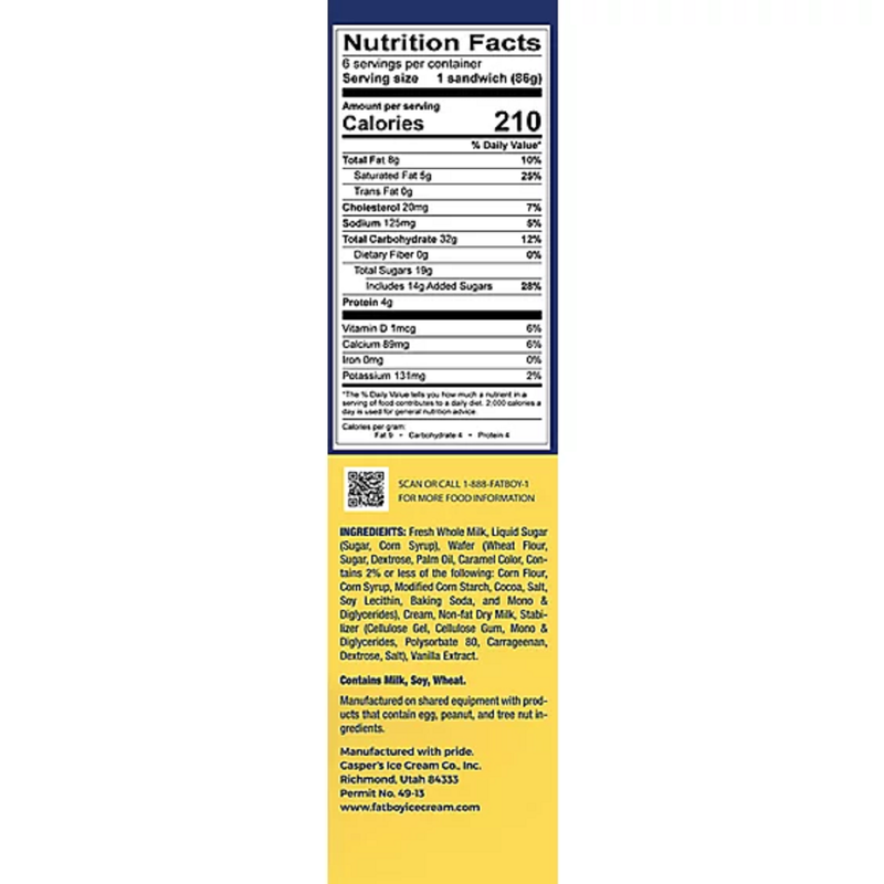 FatBoy Sandwich Vanilla Ice Cream Sandwich 6ct