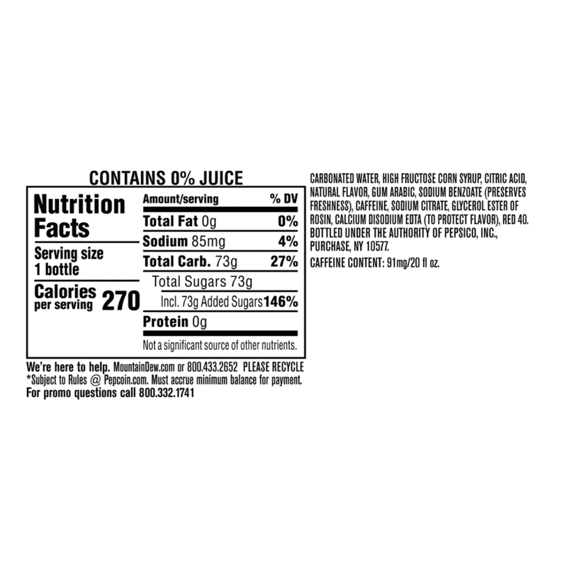 Mountain Dew is a favorite of teens and young adults. Extra boost of caffeine in citrus flavored drink. "Do the Dew"