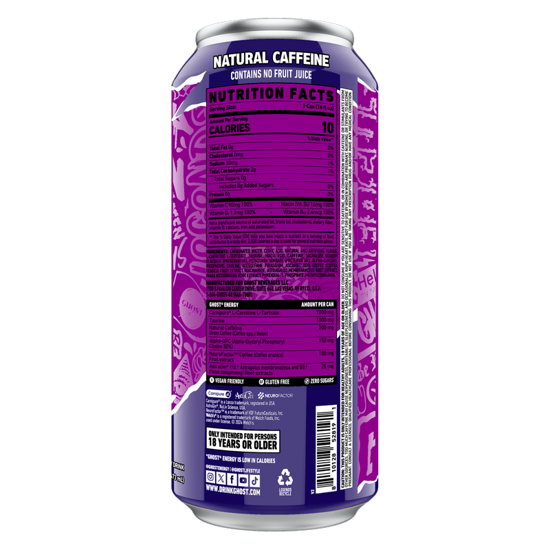 Introducing GHOST® ENERGY, the fully transparent, fully loaded, feel-good energy drink we've all been waiting for. No sugar. No artificial colors. No BS. GHOST® ENERGY is the first full disclosure energy drink that delivers on efficacy and the info to ensure you know exactly what you're getting in every can. Combining 200mg of natural caffeine with brain-boosting nootropics to deliver the perfect combo of energy and focus.
