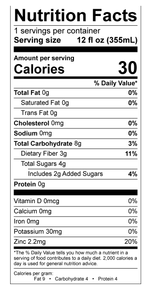 All-natural prebiotic drink, sweetened with real fruit juice, pure cane sugar and natural stevia leaf extract.