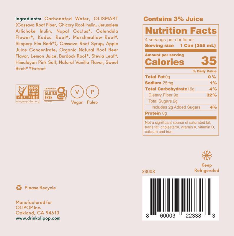Olipop Classic Root Beer 4pk 12oz Can- XL