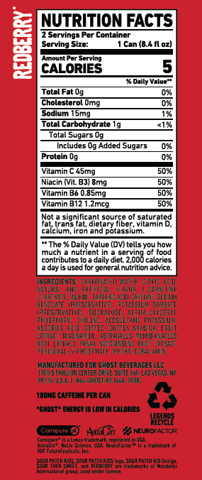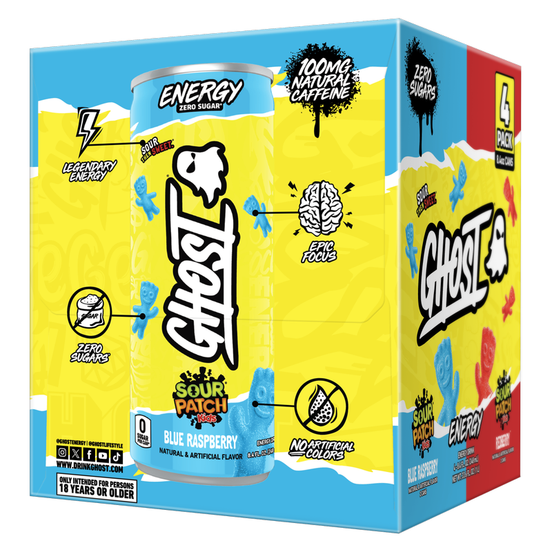GHOST ENERGY Zero Sugar Sour Patch Kids Variety Pack Blue Rasberry and Redberry 4pk 8.4oz Can