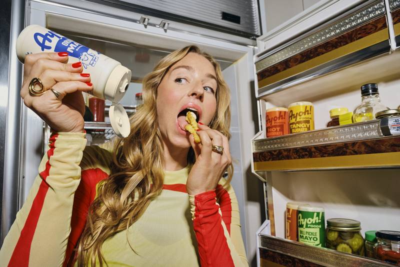 Made by Molly Baz. If you know anything about Molly you know she is a mayo maniac, sauce champion, condiment connoisseur, sando seeker, acidity admirer, recipe developer, bestselling cookbook author, and weenie mother with a lifelong love of eating, feeding, and teaching other people how to cook.