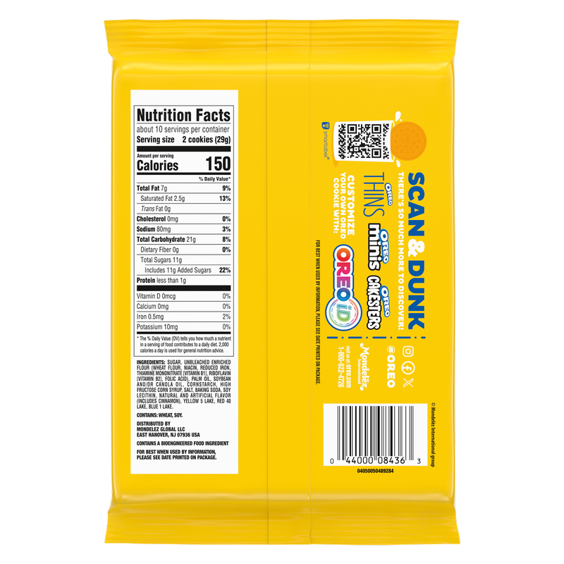 Take a delicious break with OREO Apple Pie a la Mode Sandwich Cookies, a delightful combination of a classic American dessert and milk's favorite sandwich cookie. Supremely dunkable, these delicious OREO cookies feature apple pie and vanilla ice cream-flavored creme filling layered between two crispy vanilla sandwich cookies. Sweet treats that you can pack as lunchbox snacks to surprise loved ones, OREO Apple Pie a la Mode cookies also are great for enjoying with a glass of milk or bowl of ice cream. You even can mix these apple pie cookie snacks into your favorite dessert recipe. These certified kosher snack food cookies are wonderful holiday party snacks, office snacks, lunch snacks, and after-school snacks for kids and adults. The resealable package with easy-pull tab keeps these apple pie-inspired Golden OREO vanilla cookies fresh for snacking, sharing, traveling, or entertaining.
