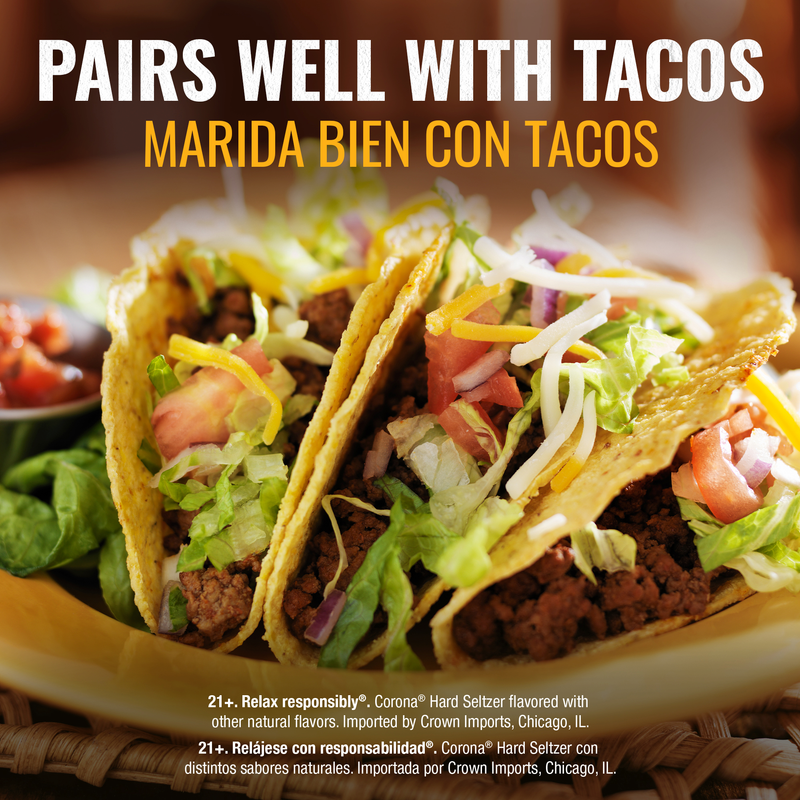 A tasty spiked seltzer water with a splash of natural flavors, Corona Hard Seltzer Berry Mix Pack includes 12 slim cans of alcoholic seltzer water from the makers of Corona Extra Beer – and with the same chill attitude and premium quality for which Corona is known. Experience this lightly fruit-flavored seltzer water that invites you to enjoy the moment, offering a day-at-the-beach feeling wherever you happen to be. A canned seltzer with 0 to 3 grams carbs**, 0 to 3 grams sugar*, 90 to 100 calories, natural flavors, and gluten-free ingredients, this Corona beverage is available in a delicious berry seltzer variety pack of four refreshing flavors, including Blueberry-Acai, Strawberry-Kiwi, Blackberry-Lime, and Raspberry. With this reimagined seltzer cans mixed pack, you can enjoy your favorite berry seltzer at the pool, at the beach, at a backyard BBQ, or wherever you and your friends get together. Bright flavors meet beach vibes with Corona Hard Seltzer.