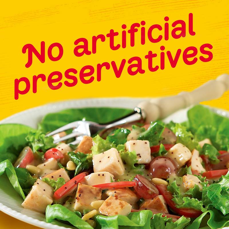 Enjoy thick, flavorful slices of chicken without the need to get out your own knife and carving board. Oscar Mayer Carving Board Flame Grilled Chicken Breast Strips, Browned With Caramel Color, are packed with flavor and made with 100% chicken breast, so they're the perfect addition to any meal. An excellent source of protein, our flame grilled chicken breast strips are 97% fat-free and have a rich, mouthwatering taste. Fully cooked and ready to eat, our grilled chicken breast strips, Browned With Caramel Color, are perfect for making chicken wraps, topping salads and enjoying on their own as a high protein snack. Keep each 6-ounce package of deli chicken refrigerated to maintain freshness. If you enjoy our grilled chicken breast strips, be sure to try our sliced ham or turkey as well as many other varieties of deli department cold cuts.
