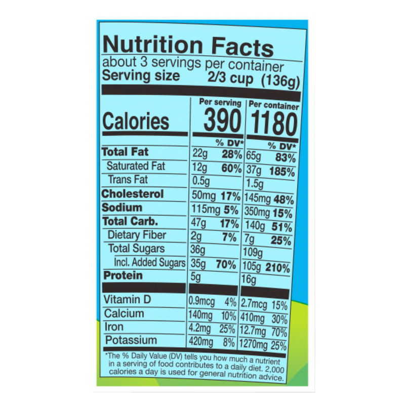 Have a hard time choosing between cookies and ice cream? Now you don’t have to! Chocolate ice cream is swirled with decadent caramel and chocolate chip cookie dough, topped with a layer of chocolate ganache and caramel cups for a luxurious frozen delight.