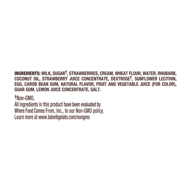 Talenti Gelato Layers Strawberry Shortcake, we start with a layer of strawberry gelato, a layer of shortbread pieces, followed by strawberry rhubarb sauce, another layer of strawberry gelato, and a final layer of pie crust pieces.