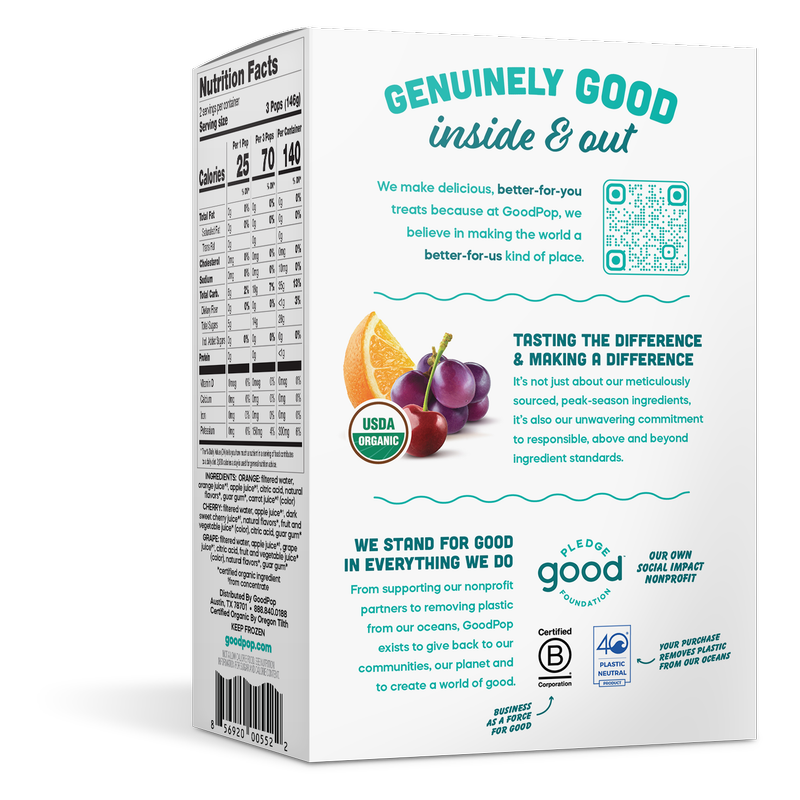 GoodPop Orange Cherry Grape Junior Pops 6 ct