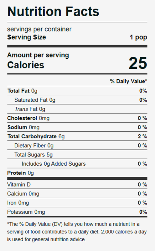 These junior pops are a childhood favorite cleaned up with 100% fruit juice and come in 3 mouthwatering flavors that will satisfy kids and parents alike. It's a childhood favorite you can feel GOOD about!
