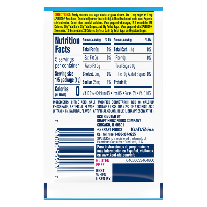 Quench your thirst with the refreshing taste of Kool Aid Unsweetened Tropical Punch Artificially Flavored Powdered Drink Mix. Unsweetened powdered drink mix makes it easy to prepare a fruity tropical punch drink anywhere. Our artificially flavored tropical punch powder drink mix is caffeine free, a good source of vitamin C and a great choice for the whole family. Each handy packet of unsweetened tropical punch drink mix ensures that you always have a refreshing beverage ready to go. To prepare, empty the contents of our 0.16-ounce powdered drink mix into a plastic or glass pitcher. Add 1 cup of sugar or your sweetener of choice. Then, just add ice and water and stir for a 2 quart supply of tasty tropical punch Kool Aid.