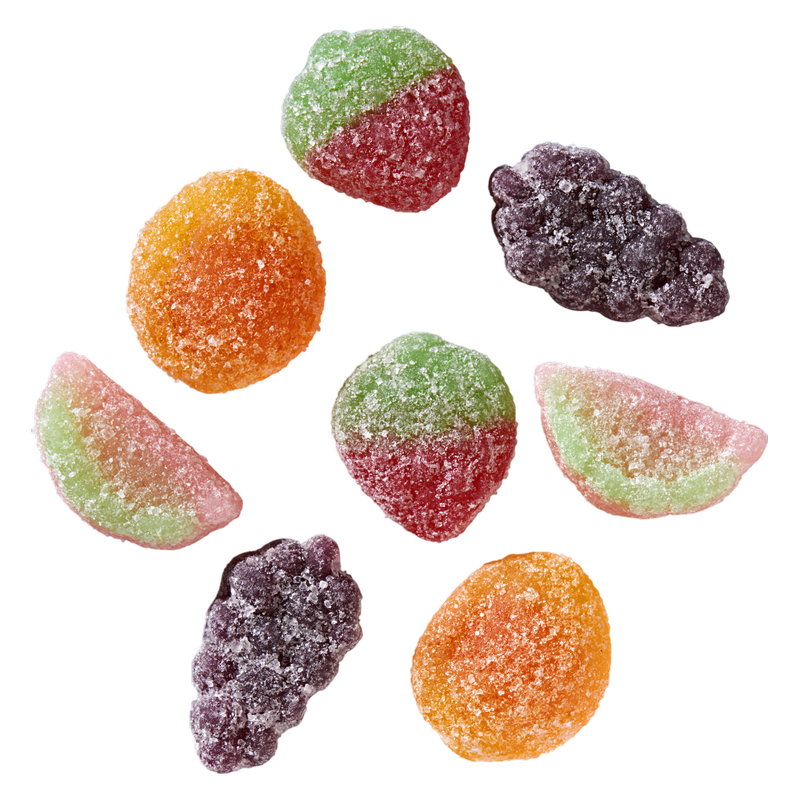 Tempt your taste buds with SOUR PATCH KIDS Fruits Mix Soft & Chewy Candy. These deliciously juicy watermelon, peach, grape, and strawberry flavor candies are sweet and fruity, with just a little bit of sour. A bagged candy mix of fun fruit shapes and colors, this semi-sour candy variety pack brings excitement to your snacking experience. From green and pink candy shaped like tiny watermelon slices to sour candies shaped like mini bunches of purple grapes, each bag of candy contains a SOUR THEN SWEET treat to satisfy everyone's taste buds. You even can create a custom not-so-sour treat flavor, perhaps with a peach and sour watermelon candy combo! Pour these sour gummy snacks into your favorite snack bowl to create a colorful summery display for munching on during game night, movie night, or any time of the year. This bagged candy is great for sharing or stashing in purses, backpacks, and lunchboxes, and it's a great movie theater candy to snack on during your favorite flick. Sealed bags keep the soft candy chewy and full of fruit flavor so it's always ready to enjoy.