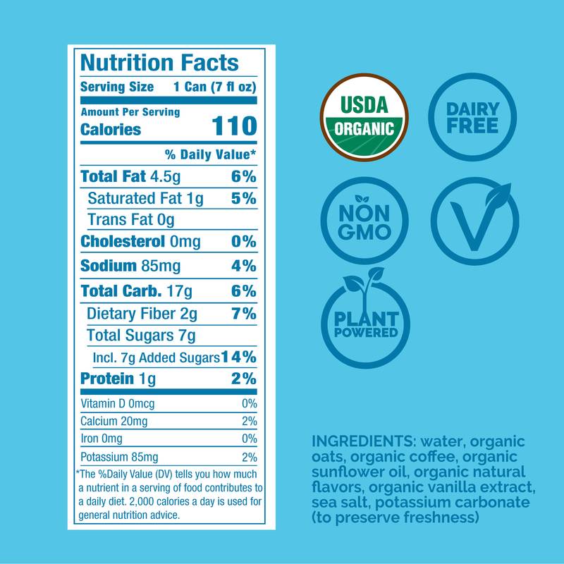This nitrogen-infused cold brew latte enhances RISE's signature organic coffee with a dash of dairy-free oat milk and organic vanilla extract from Madagascar.