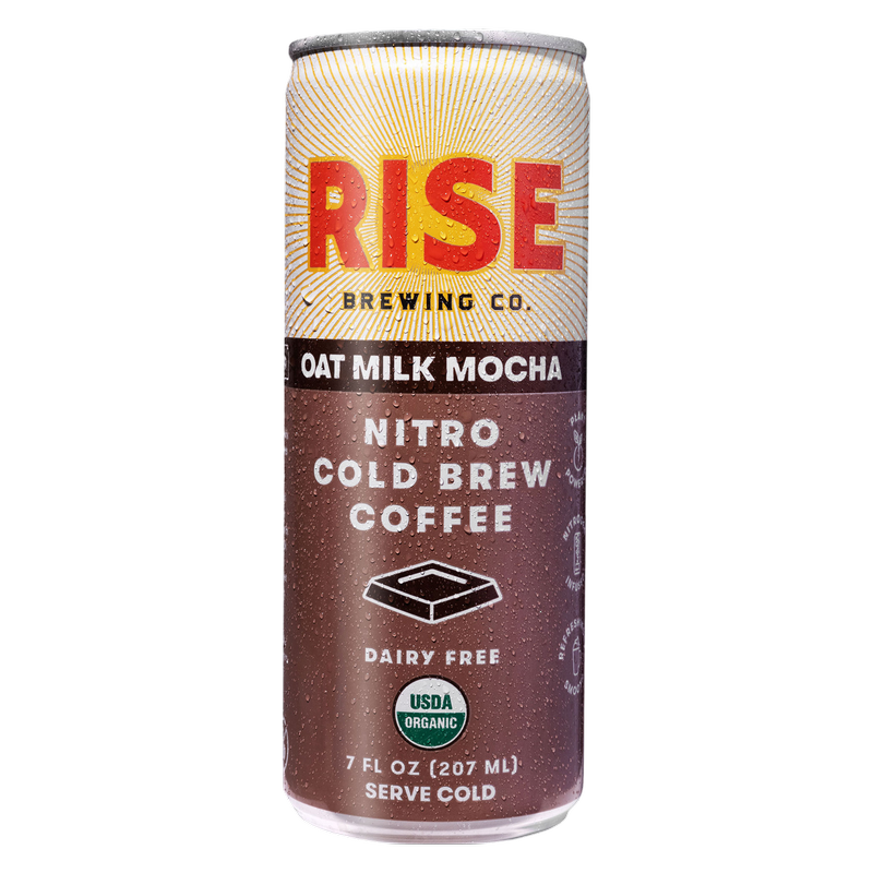This nitrogen-infused cold brew latte enhances RISE's signature organic coffee with silky oat milk and rich cacao.
