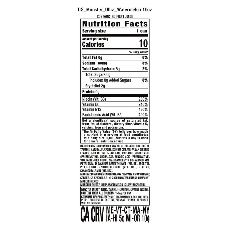 Under the firework lit night sky, you’ve got your crush by your side. With good music and better friends, it’s the best summer ever. Unleash the Ultra beast with Ultra Watermelon! Zero sugar, easy drinking refreshing flavor with the explosive Monster Energy blend to light-up those hot summer nights. Ultra Watermelon is summertime in a can so you can enjoy it anytime. Monster Energy Ultra Watermelon has 10 calories and zero sugar but with all the flavor you’re accustomed to and packed with our sugar-free Monster Energy blend.