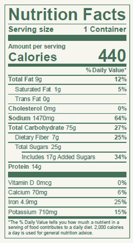 Edamame, carrots, red peppers and chow mein noodles in a rich Mongolian style sauce.