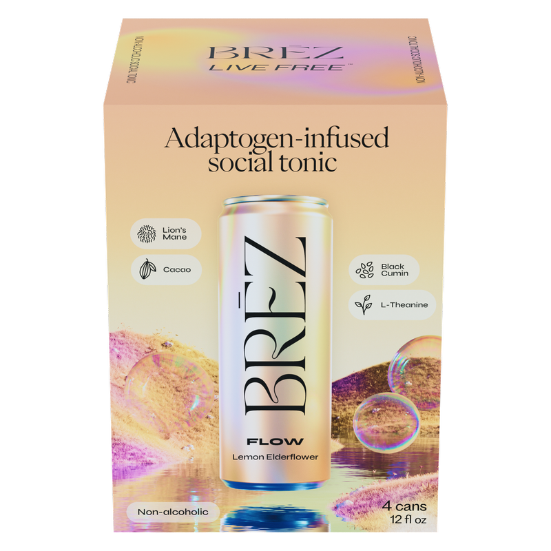 Brez Flow Lion's Mane & Black Cumin Seed Social Tonic 12pk 12oz Can Lemon Elderflower