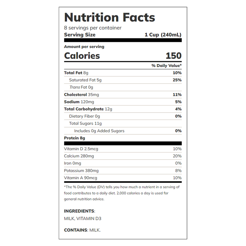 Just Whole Milk! Whether you're enjoying a glass of milk with your breakfast or using it in your favorite recipes, Whole Milk is the perfect choice.