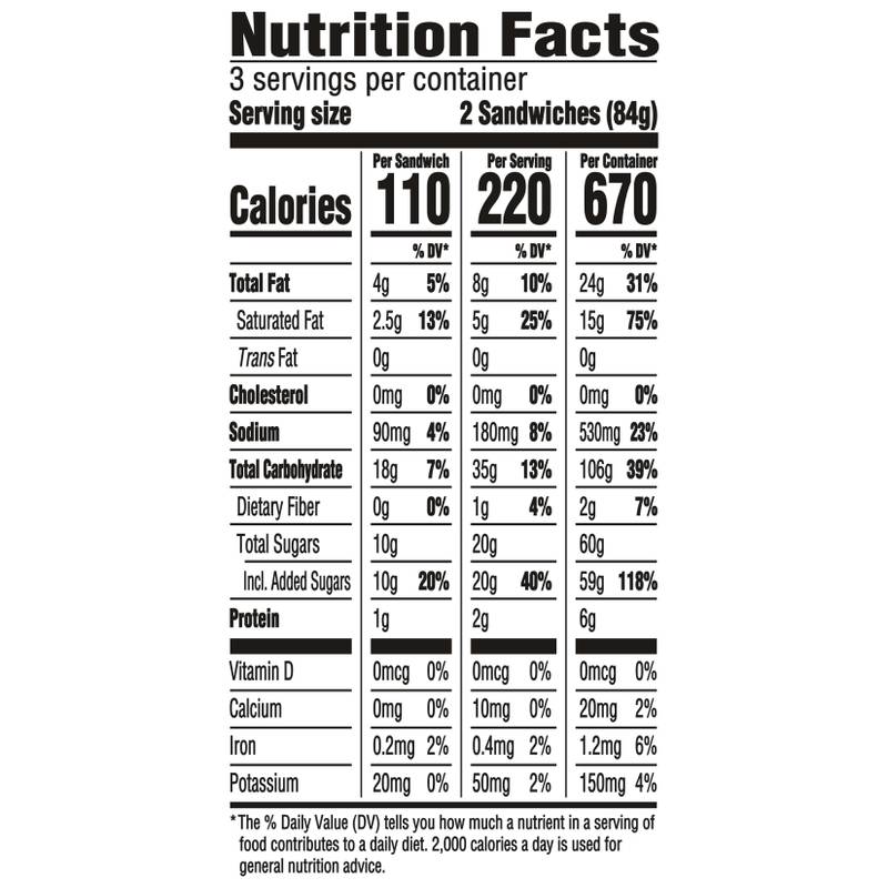Luscious strawberry cheesecake crème sandwiched between two graham wafers.