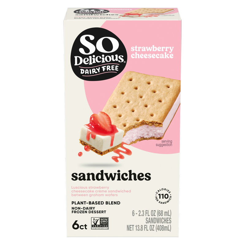 So Delicious Dairy-Free Strawberry Cheesecake Ice Cream Sandwiches, 6ct