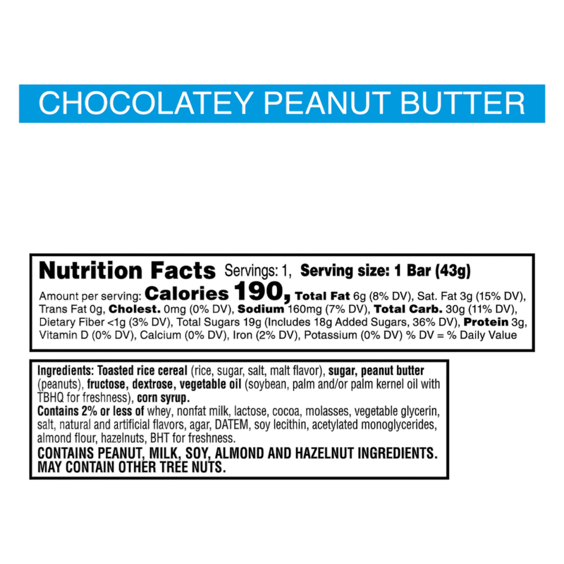 Enjoy the fun of everyday moments with the irresistible taste of Chocolatey Peanut Butter Rice Krispies Treats crispy rice squares. Create memorable moments with each and every delectable square that pulls apart to reveal chocolatey peanut butter goodness.