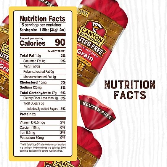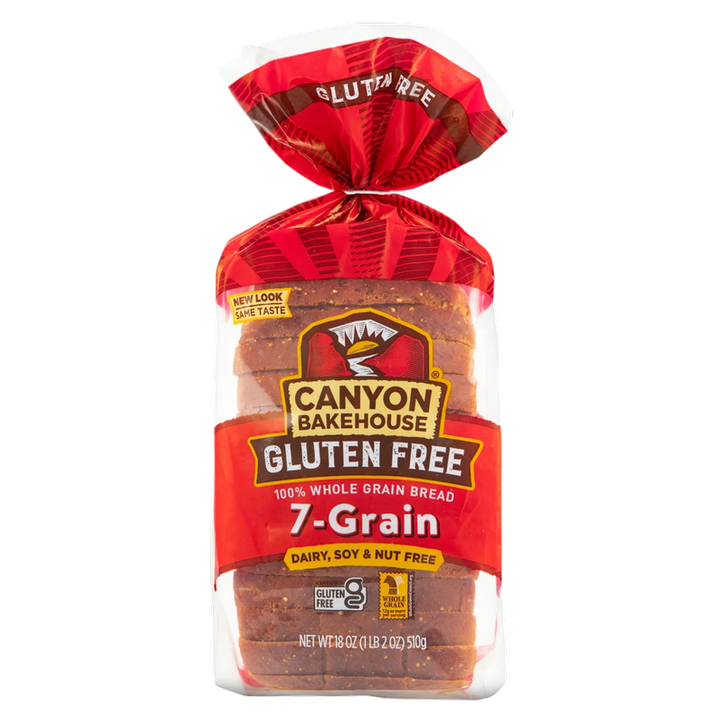 Canyon Bakehouse® 7-Grain bread is baked with 7 delicious whole grains including quinoa, teff, amaranth and sorghum for a delightful flavor that is perfect for toast, sandwiches or any creation! Certified Gluten-Free, this classic bread is also free from dairy, nuts and soy and baked with whole grains.
