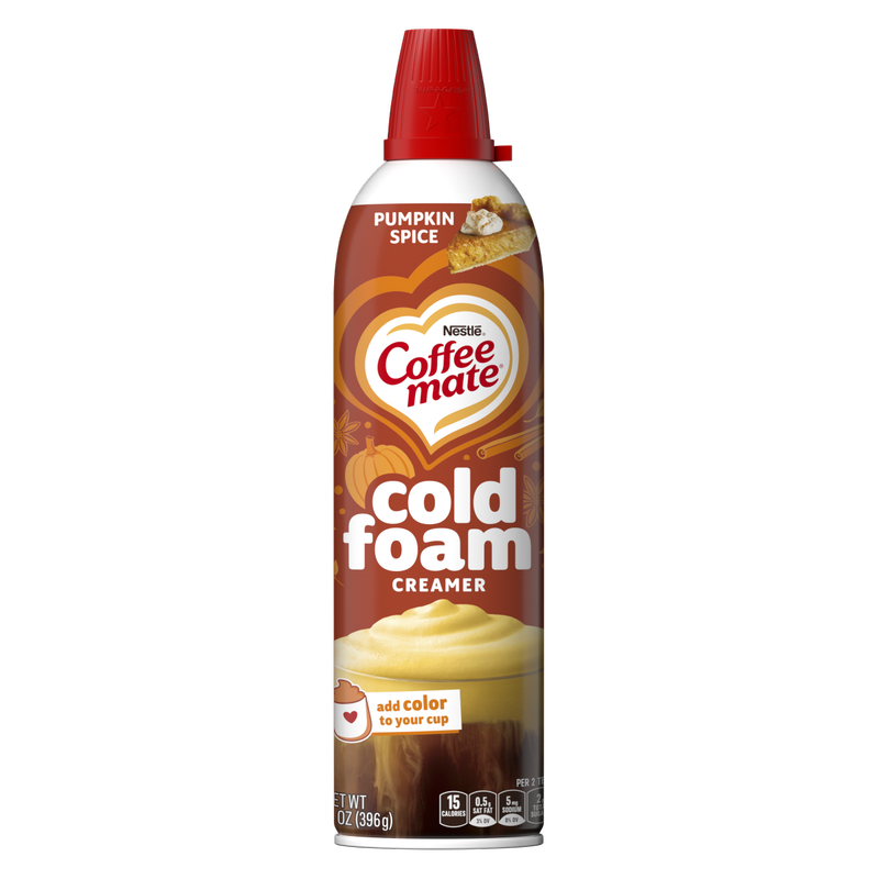 It’s time to make your coffee breaks iconic with Coffee Mate Pumpkin Spice Flavored Cold Foam Creamer. You’re going to fall in love with our fall coffee creamer, taking you from your early morning grind to your late-night fuel up with up to 50 servings. We’re here for your coffee mug, your iced coffee glass and your midnight martini. Dietary preferences? We have those covered too – our nondairy creamer is cholesterol-free, and gluten-free. Keep your cold foam coffee creamer cool in the fridge for up to 14 days (if you don’t finish it right away). Ready to level up your coffee game with our Pumpkin Spice flavored coffee creamer yet?