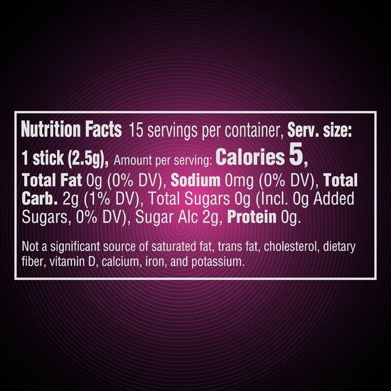 Ever wonder what it’s like to chew 5 Gum? Now, let's take it a step further. 5 Gum Evolution is a hardcore sensorial emersion with flavor changing right on your tongue. 5 Gum Evolution Sour to Sweet Berry delivers a bold flavor-changing experience from tangy sour to luscious berry sweetness in every chew. Each piece delivers a mouthwatering blast of flavor that hits your taste buds and wakes up your senses. Picture this: you’re vibing to your favorite playlist, savoring an intense chew of 5 Gum. Prepare for a sour to sweet transition of berry flavor that will turn the moment up a notch. It’s not just gum! It’s a full-body flavor experience. Keep the flavor going wherever you are. This sleek 15-stick pack is perfect to toss in your bag and share with friends. Turn up the taste. Chew 5 Gum Evolution Sour to Sweet Berry.
