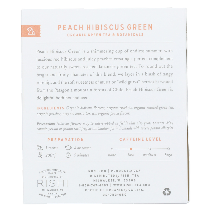 Rishi Tea Organic Peach Hibiscus Green Tea Sachets 15ct Box