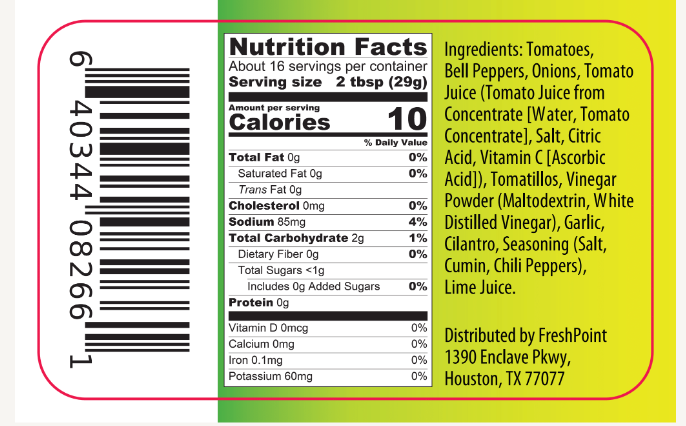 Bursting with garden-fresh flavor, this mild salsa features a vibrant blend of green and red peppers, ripe tomatoes, and zesty lime juice. A hint of garlic and cilantro complements the savory taste, while a touch of vinegar powder gives it a smooth, refreshing finish.