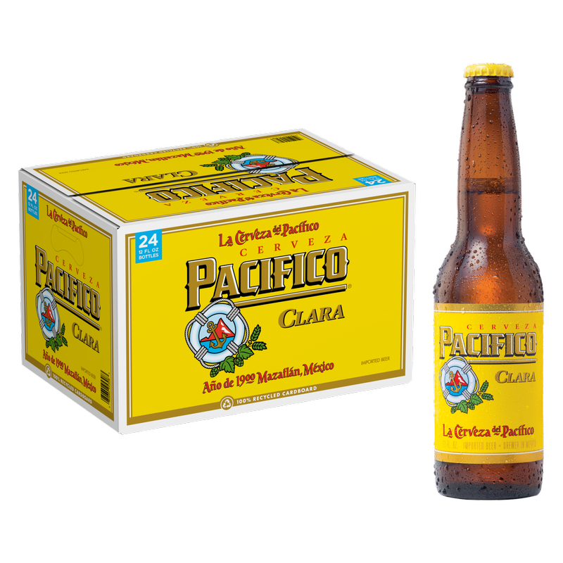 Cerveza Pacifico Clara Mexican Beer offers a hearty, crisp taste of citrus and ocean mist. Enjoy this mildly bitter imported beer with grilled shrimp or a Baja taco while watching the ocean waves.