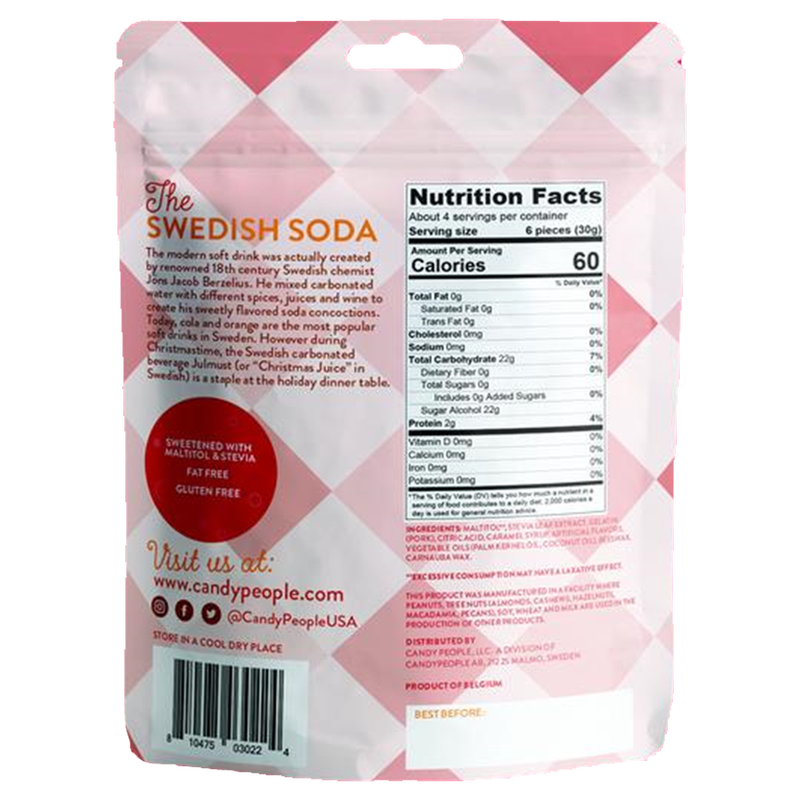 Cola flavored gummy candy was inspired by the modern soft drink, created by renowned 18th century Swedish chemist Jöns Jacob Berzelius. He mixed carbonated water with different spices, juices and wine to create his sweetly flavored soda concoctions. Today, cola and orange are the most popular soft drinks in Swedenâbut during Christmastime, the Swedish carbonated beverage Julmust (or âChristmas Juiceâ in Swedish) is a staple at the holiday dinner table.