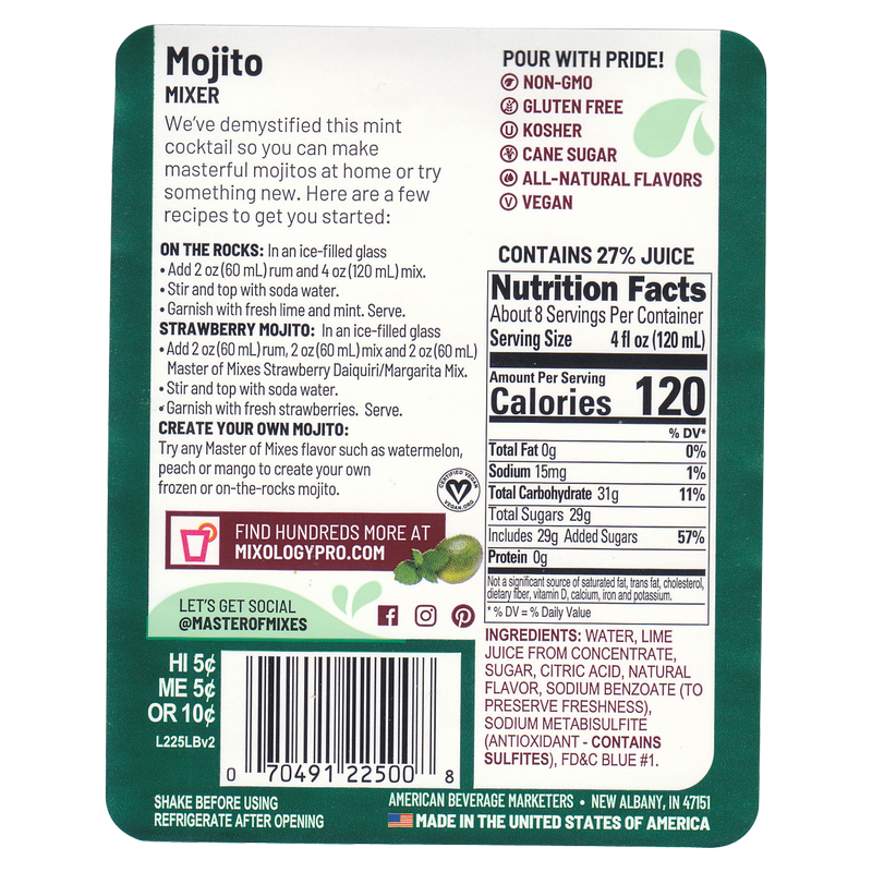 Impress your friends by making them a tasty Mojito. Master of Mixes, makes it easy. Just add crushed ice and your favorite rum in a shaker and serve in minutes.
