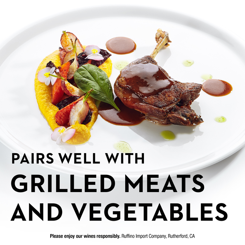 Ruffino Chianti DOCG Red Wine is an Italian wine that balances freshness with a soft and lingering finish. With fruity and floral aromatics, it pairs well with Italian dishes or a classic hamburger.