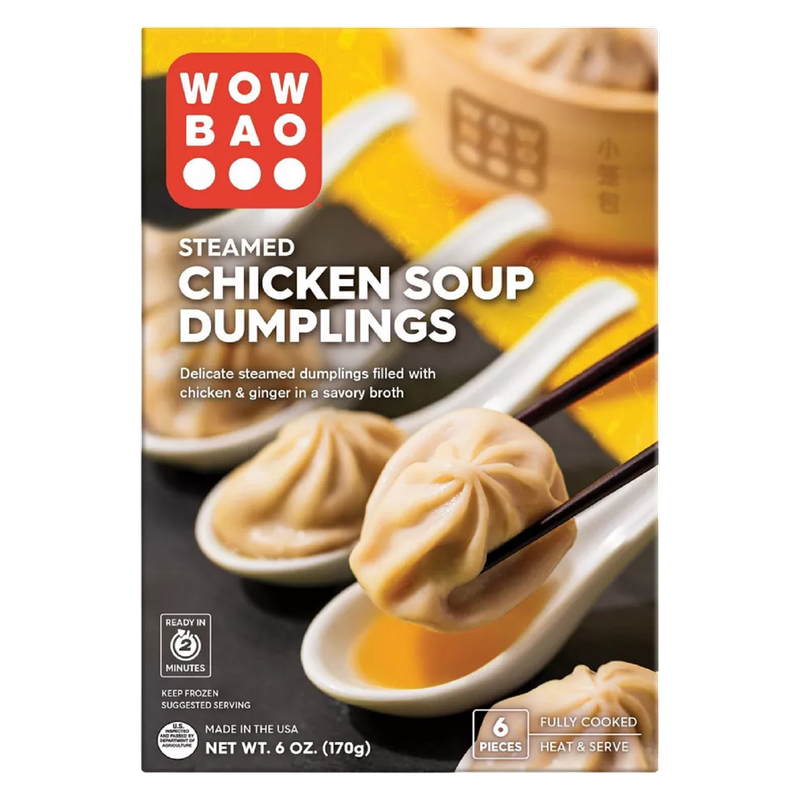 Wow Bao’s Chicken Soup Dumplings are delicate steamed dumplings filled with chicken and ginger in a savory broth. Meant to be enjoyed in one bite, this traditional Chinese dim sum can be served as an appetizer, snack, or meal. Wow Bao has been steaming delicious fluffy bao since 2003 and soup dumplings are one of its new items in a restaurant-quality product line that can be found in the freezer section. Chicken Soup Dumplings are a quick and easy way to enjoy a rich Asian flavor profile that can be enjoyed by simply steaming the frozen dumpling on the stove or heating them in the microwave. Either way, your soup dumplings will be ready in just minutes to feed any need.