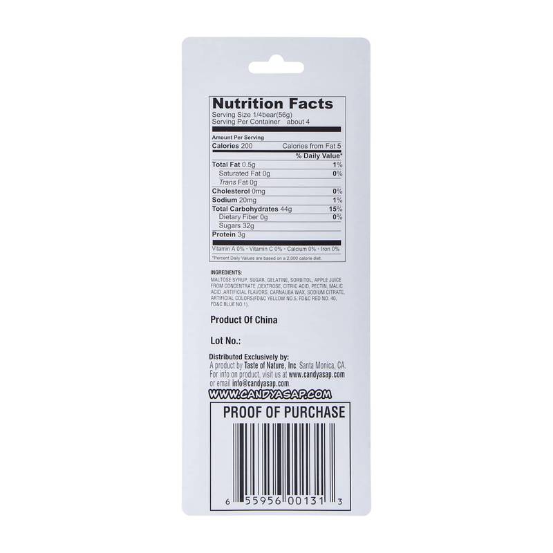 The Ginormous Gummi Bear is almost 100 times larger than the average Gummi Bear! Two yummy flavors in each Ginormous Gummi Bear include Strawberry and Blue Raspberry in one and Cherry and Green Apple in the other!