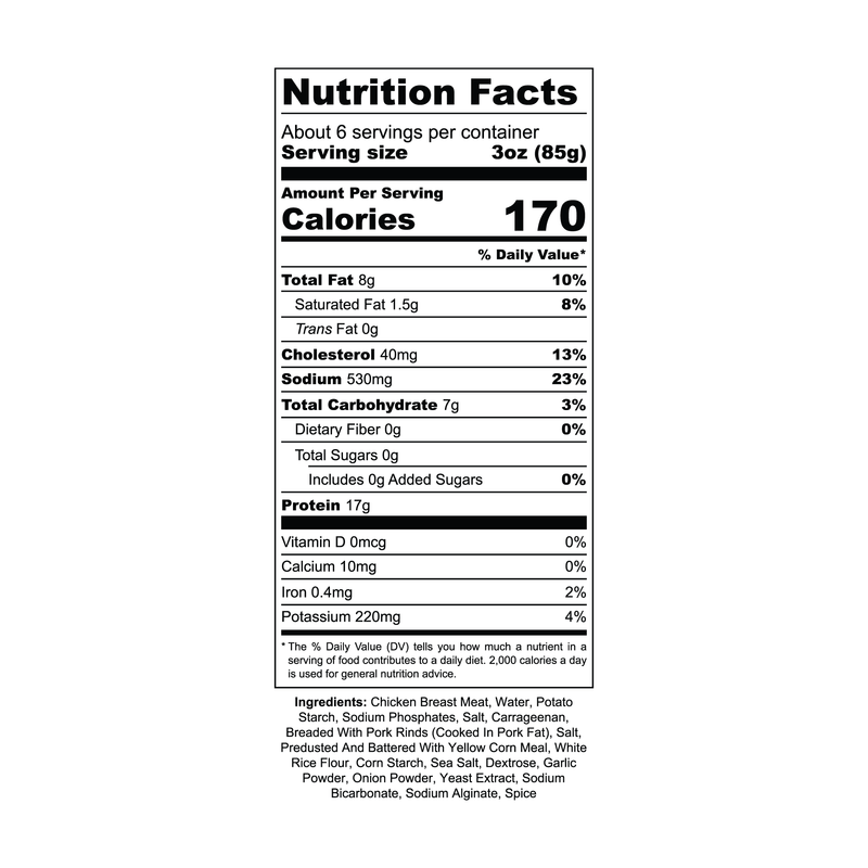 Not only have we developed a product that’s never before been sold in stores, we’ve invented a whole new word for them! Pork King Good's Chicken Puggets™ are unlike anything you’ve ever seen in the frozen food aisle – trust us, we’ve tried them all! These are premium low carb, gluten-free, super-charged nuggets, breaded in our best-selling Pork King Good Pork Rind Crumbs! That’s right, we took the snack that made us famous and made it the star of the show in a whole new way!