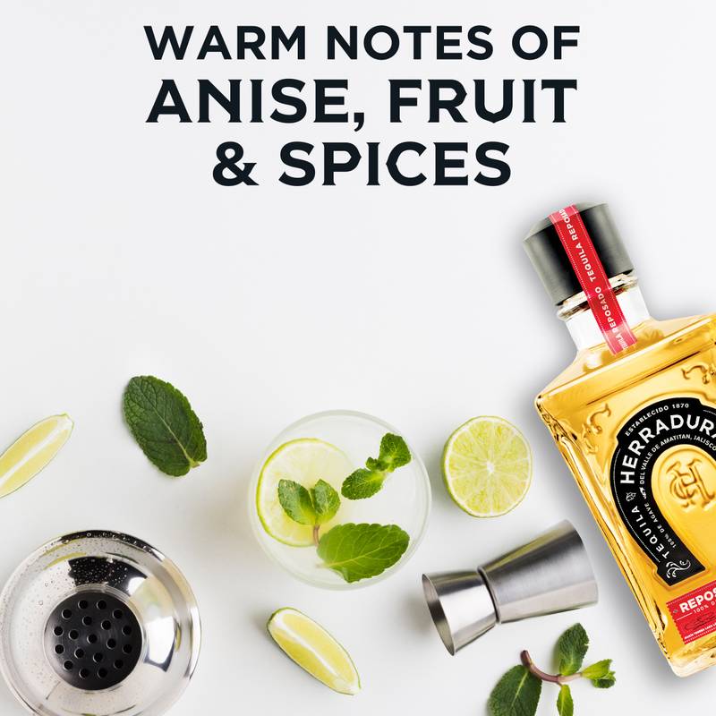 Tequila Herradura Reposado is the world's very first tequila reposado that is aged longer than the industry standard for 11 months in charred American white oak barrels. The additional time spent resting results in a deep copper-colored tequila liquor with a rounded taste. Each tequila bottle is filled with notes of cooked agave, vanilla and butter complemented by a smooth and sweet finish with a touch of spice. This tequila reposado is best enjoyed neat, on the rocks, in alcohol drinks or in classic, craft cocktails like a premium Margarita or a Classic Paloma. Enjoy an alcohol drink of reposado tequila with spicy food, smoked meat, and pork. Tequila Herradura Reposado is the winner of 49 awards since 2006, including 21 golds. Please Enjoy Responsibly.