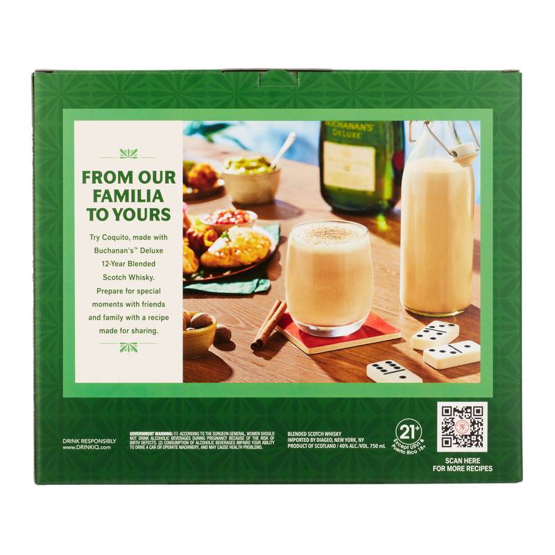 Unwind in luxury with a premium glass of Buchanan's DeLuxe Aged 12 Years Blended Scotch Whisky. Packaged with two premium branded glasses, our 80- proof whisky features a sweet, smooth flavor with orange and chocolate notes. Matured for 12 years, our DeLuxe blend offers a lighter profile compared to denser whiskies. Our luxury whisky is crafted to the highest quality for a vibrant character. As our most iconic blend, this whisky is perfect on its own or in a mixed drink. Best enjoyed in a Buchanita. Includes one 80-proof 750 mL bottle of DeLuxe Aged 12 Years Blended Scotch Whisky and two Branded Glasses. Please drink responsibly.