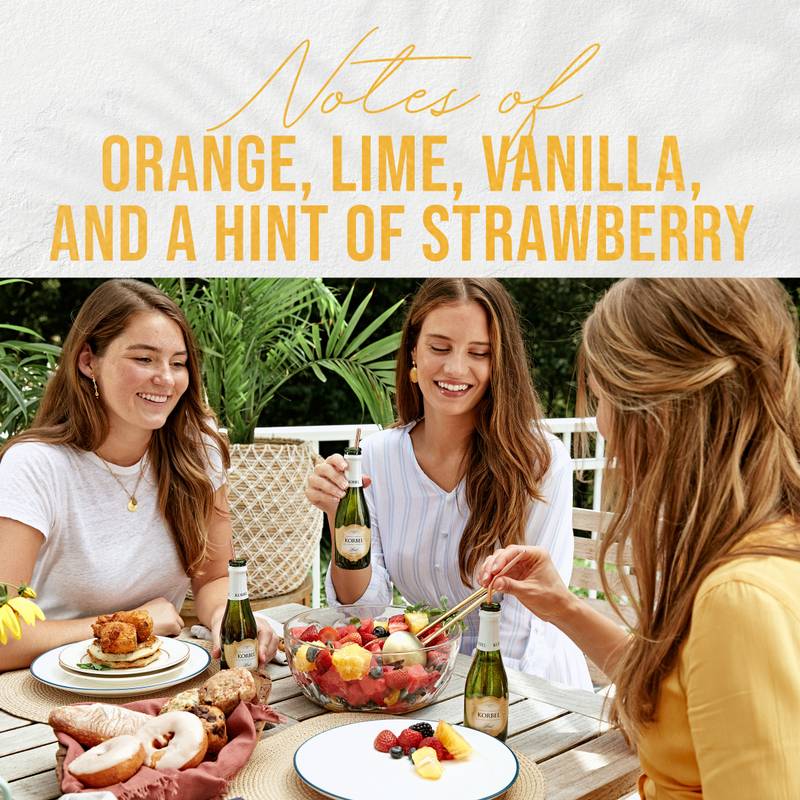 Korbel Brut California Champagne is the perfect complement to every celebration. Lively aromas of citrus and cinnamon lead to crisp flavors of orange, lime, vanilla and a hint of strawberry. Using the traditional méthode champenoise, Korbel Brut is fermented inside the same bottle from which it is served. This California winery blends some of the finest Chardonnay, Chenin Blanc, French Colombard and Pinot Noir grapes, to deliver delicate nuances and countless dazzling bubbles for a delicious California champagne. As a gold medal winner at the 2019 Los Angeles International Wine Competition and 2020 San Diego International Wine & Spirits Competition, this smaller 187 ml bottle of Korbel Brut California Champagne should be an essential, on-the-go item for gifts, celebrating more weddings and showers, anniversaries, and New Year's Eves. Korbel Brut is wonderful on its own or as part of a festive mimosa bar. This refined sparkling wine has a 12% alcohol by volume, and a balanced, medium-dry finish that pairs well with caviar, fried foods, salty snacks, and shellfish.