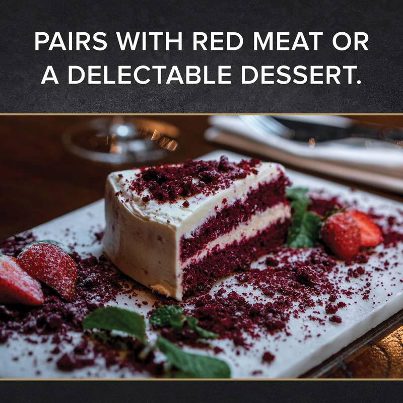 Explore your deepest, darkest desires with Menage a Trois Midnight Dark Red Wine. A gorgeous garnet color in the glass, this luxurious red blend of Merlot, Cabernet Sauvignon, Petite Sirah and Petit Verdot varietals wrap you up in a velvety embrace. Blackberry and plush spiced plum flavors seduce your palate, while hints of mocha and exotic spice linger on your lips like a stolen kiss. This red wine blend is silky and smooth with a long finish. The 2021 vintage received 94 Points at the 2023 Toast of the Coast Competition. Serve this bottled wine with red meat dishes and any delectable dessert. Sourced from California grapes, this red wine blend is aged on French and American oak to round out the flavors. This bottled wine has 13.8% alcohol by volume. As you gather around the table this holiday season, enjoy Menage a Trois wine in your favorite wine glasses with mashed potatoes, chicken, turkey, stuffing and all the pumpkin & apple pies. Or get cozy around the fireplace and warm up while enjoying a glass of wine. Menage a Trois wines is the perfect holiday gift. Whether you gift wine as a stocking stuffer, to your neighbor across the street, or serve at your own holiday table. Menage a Trois wines are a great addition to holiday wine gift sets! Menage a Trois offers a robust portfolio of award-winning wines that consistently delight with a high-quality experience.