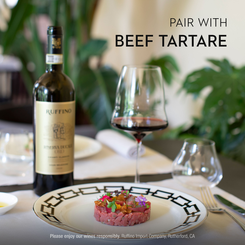 Ruffino Riserva Ducale Oro Chianti Classico Gran Selezione DOCG Sangiovese Italian red wine is elegant, balanced, and fruity, with notes of eucalyptus, chocolate, and black pepper. Pair this Tuscan wine with classic Italian dishes.