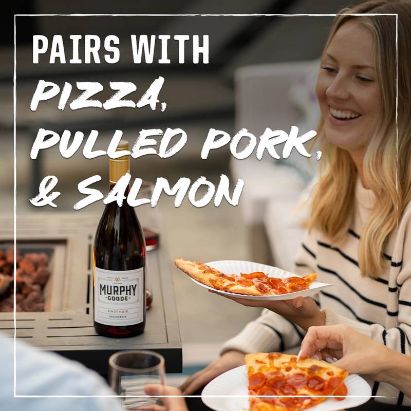 Murphy-Goode California Pinot Noir Red Wine is sourced from select California vineyards. This Murphy-Goode Pinot Noir wine combines flavors of raspberry, cherry and tea leaves for the perfect medium bodied, dry red wine. Additionally, the dry wine offers notes of vanilla, juicy red fruit character, subtle complexity and soft tannins on the finish. This red wine has a perfect balance and bright acidity. It is aged in a mix of French and American oak barrels. Pair this California wine bottle with grilled cedar plank salmon or a pulled pork sandwich with beans for a more exciting meal. This red wine Pinot Noir sources grapes throughout the coast of California. From the marine-influenced vineyards of Sonoma County down to hills of the idyllic Santa Barbara. Cool conditions in these prime growing spots keep grapes at a perfect balance between vibrant dark fruit character and bright acidity. The 2022 Murphy-Goode Pinot Noir California received 90 points from Wine Enthusiast Magazine in April 2024. Murphy-Goode makes wines for the important people in our lives: our friends. The goal is to create wines that lead to great conversations and unfiltered joy on every occasion. Raised and made in California. Trusted Nationwide. This bottled wine features a screw cap closure and has a 13.9% ABV.